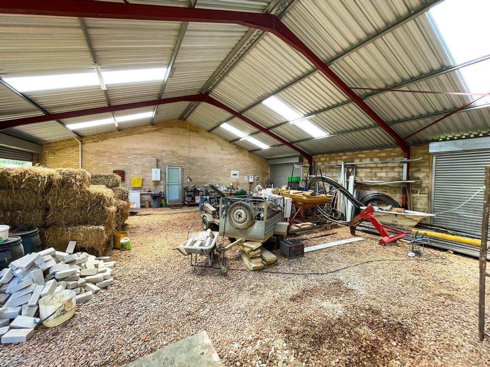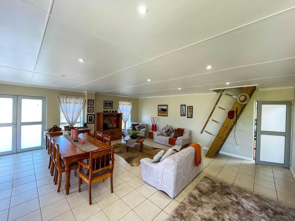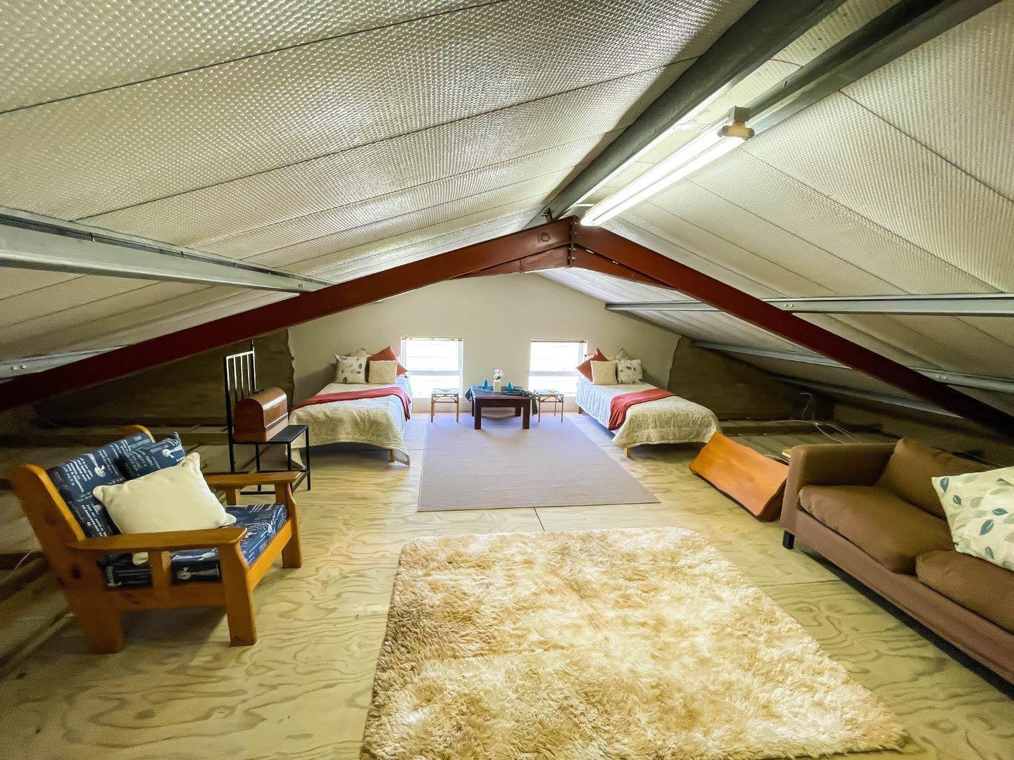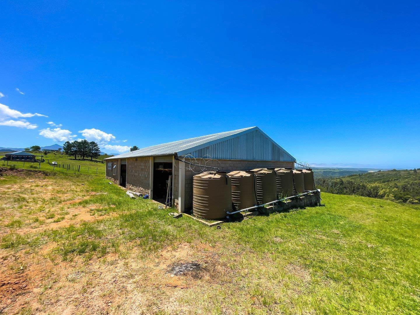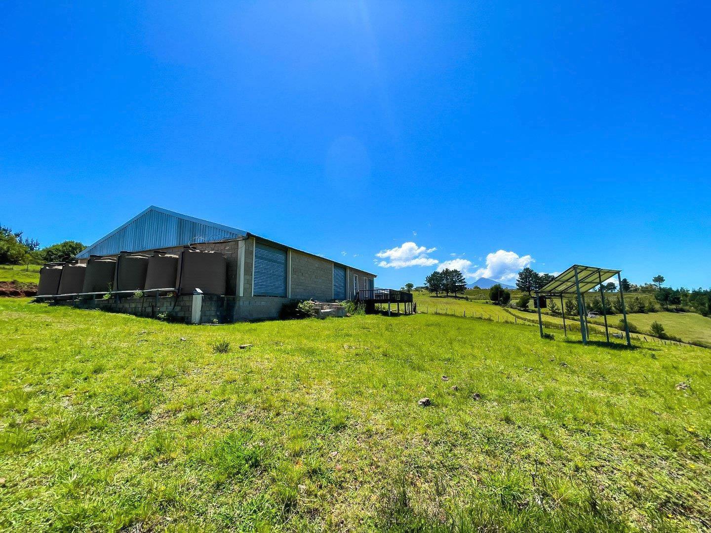 The main building, constructed six years ago with durable brick and a sink roof, efficiently combines storage and living spaces. Inside, enjoy a spacious open-plan kitchen, dining, and lounge area leading to a large bedroom with an ensuite bathroom featuring a shower, toilet, and basin. An additional guest toilet is available alongside a versatile loft room that can serve as extra sleeping quarters or be adapted to include an upstairs bathroom. Storage needs are well-catered for with a dedicated area equipped with large doors for easy access to tools and farm essentials. The expansive outdoor deck wraps around two sides of the building, offering an ideal space for entertaining, complete with a built-in braai area.