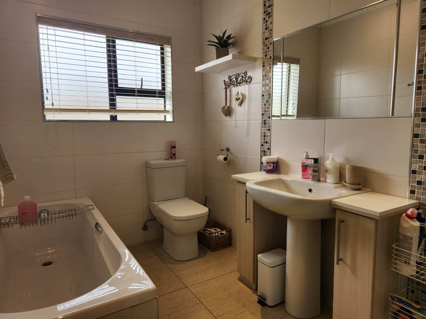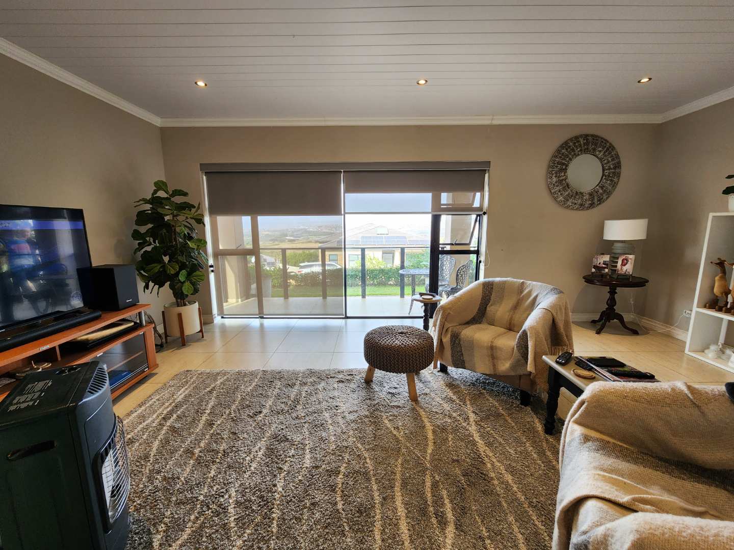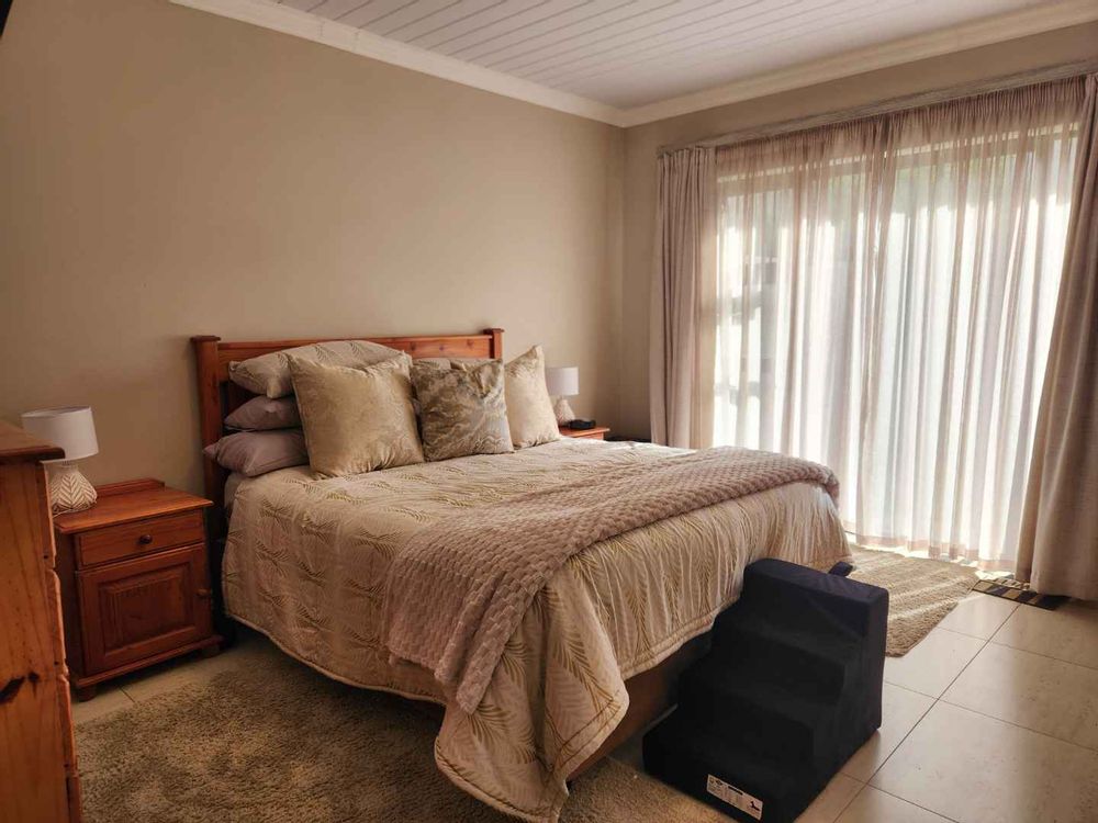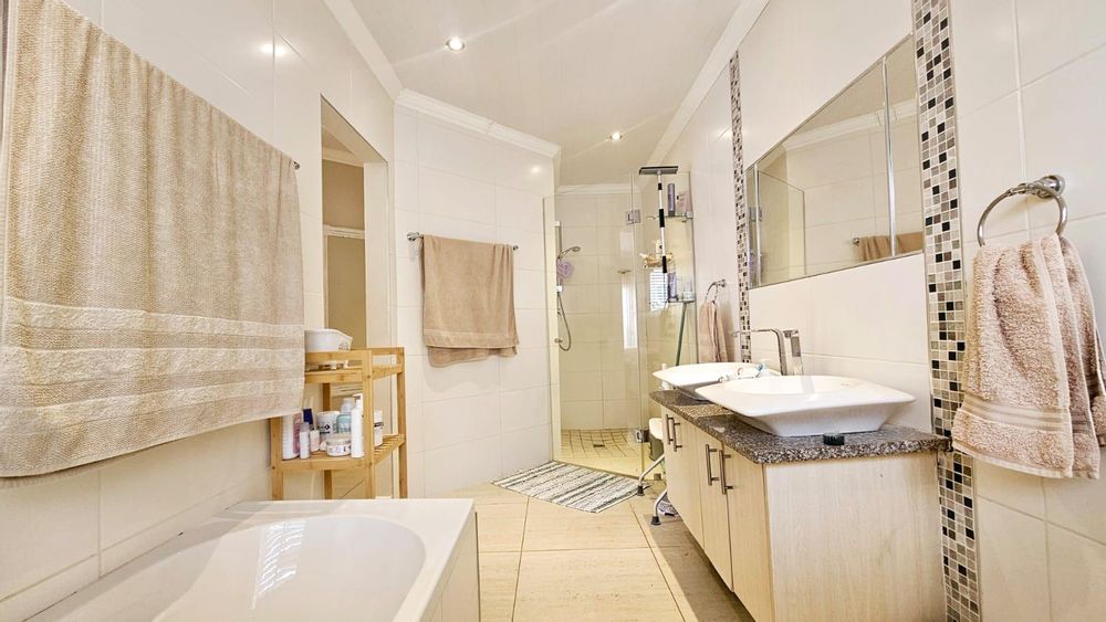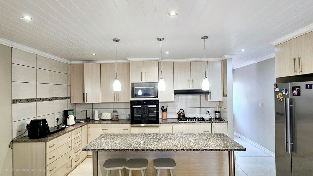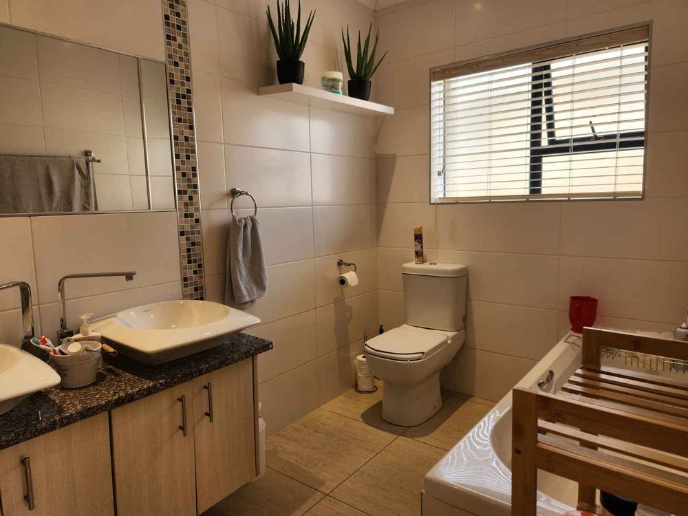 Additional features include a double automated garage with direct access to the house, a neat, low-maintenance garden, and a 3Kw solar system with four solar panels, ensuring sustainability and cost savings. The property sits on an erf size of 570m2, with a house size of approximately 210m2.