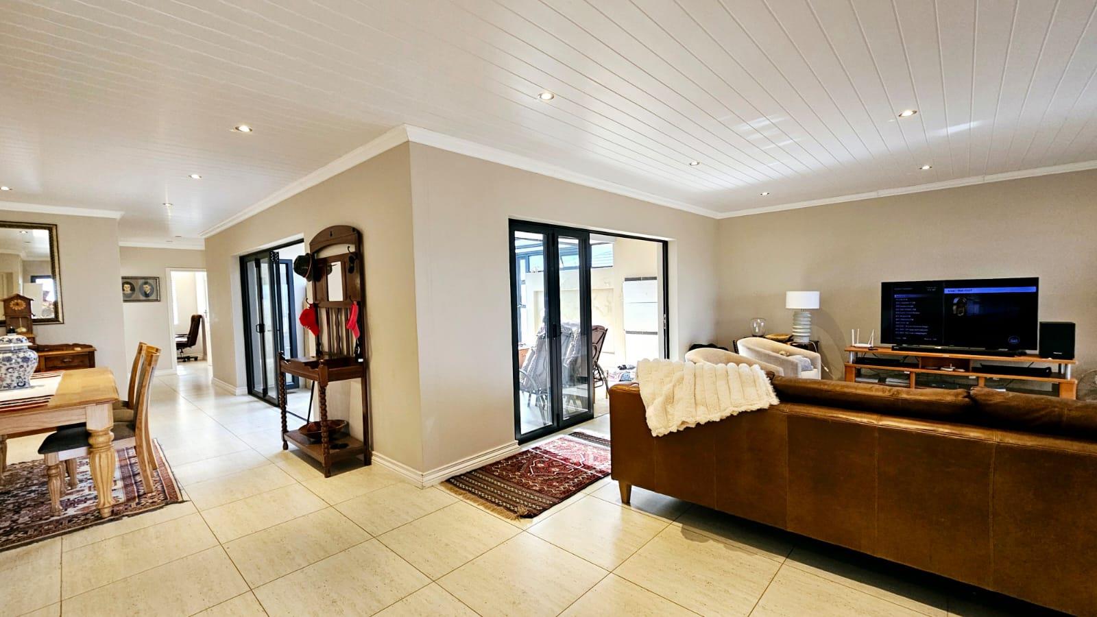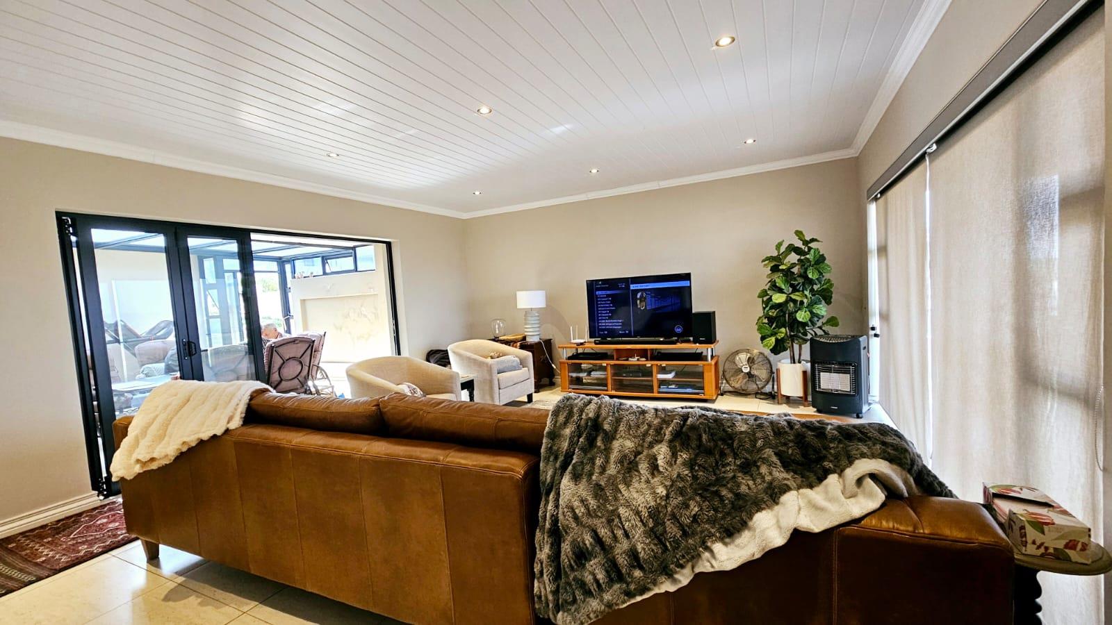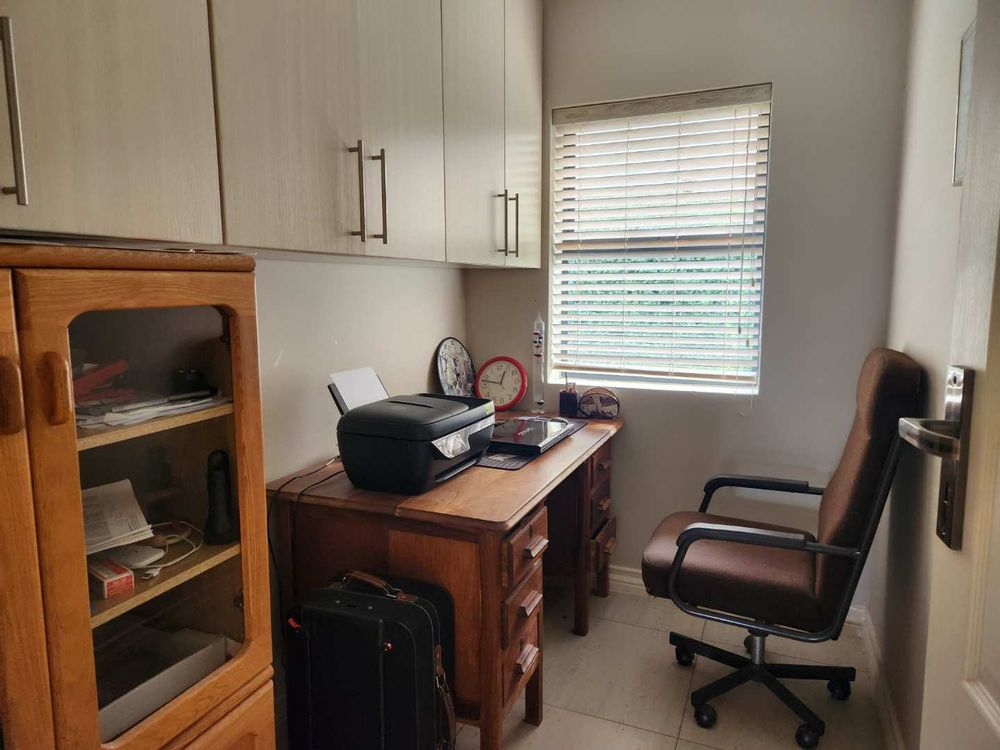 The home is designed for both relaxation and entertainment, with a comfortable dining area, a separate lounge/TV room, and a dedicated indoor braai room equipped with a stainless steel built-in braai—perfect for hosting gatherings with family and friends. A private home office or study provides an ideal space for remote work or quiet reflection.